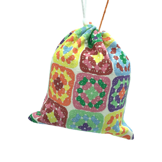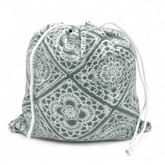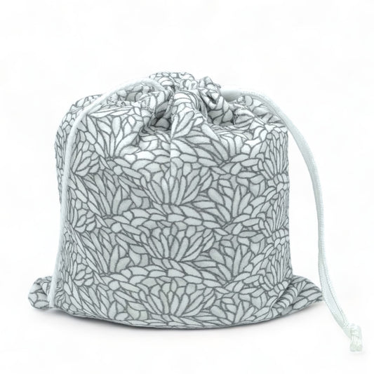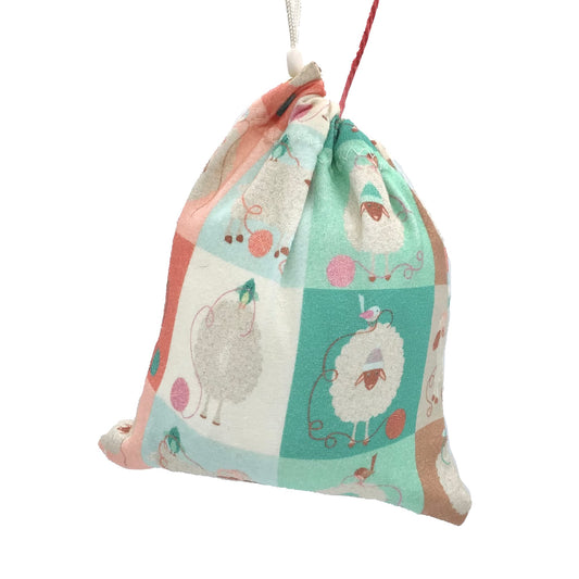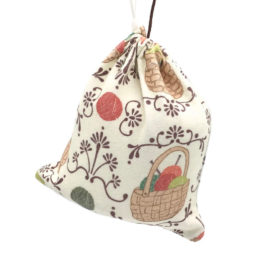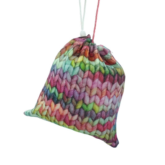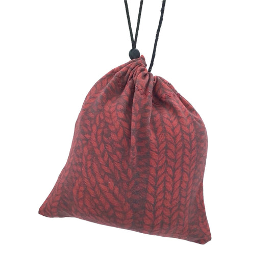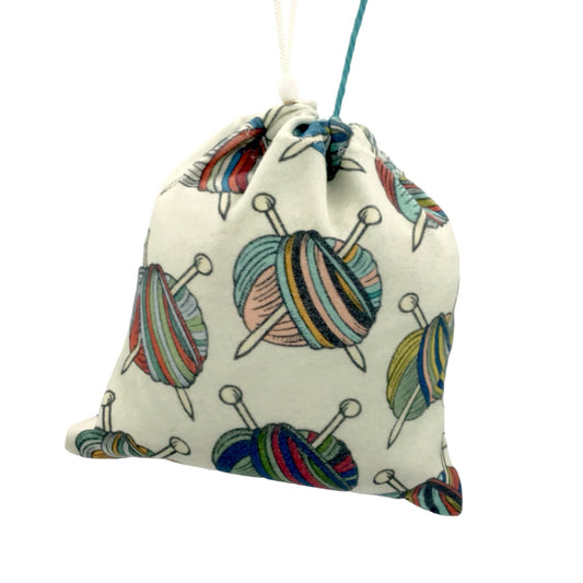 Slip the drawstring over your wrist or hang it nearby to keep it handy as you knit, or tuck it in your project bag or purse for knitting on the go. Your yarn minder will feed centre-pulled yarn to you efficiently, so you can settle into the peaceful rhythm and flow of your knitting.